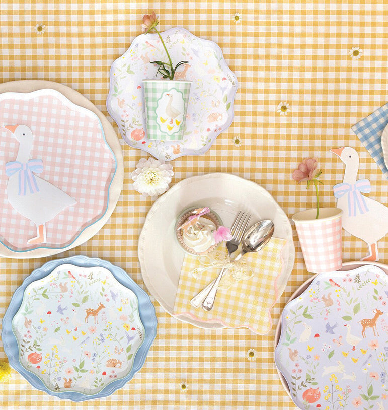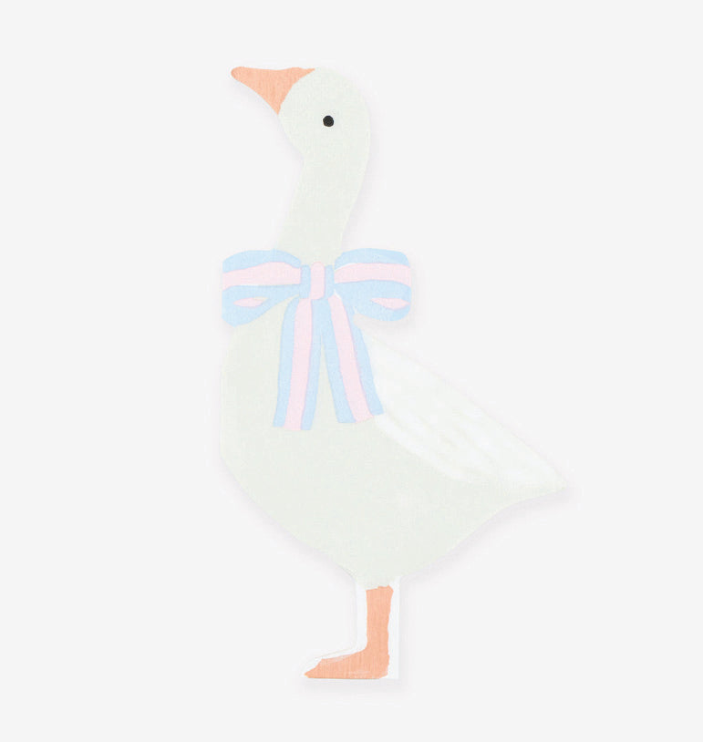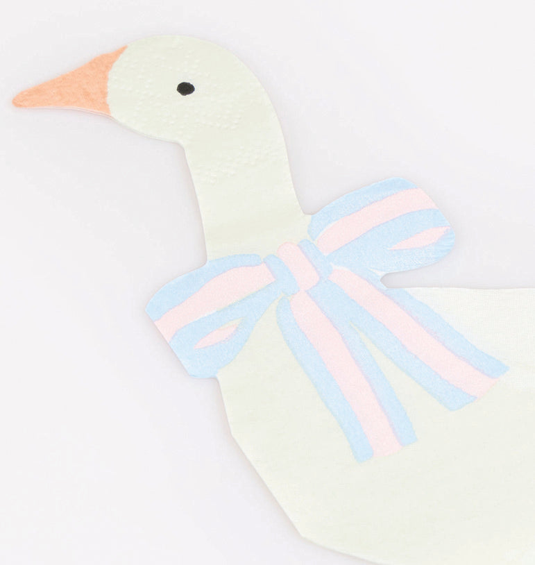 Žąsies formos popierinės servetėlės suteiks stalo dekorui žaismingumo. Tinka ūkio gyvūnėlių, miško gyvūnėlių tematikos šventėms.