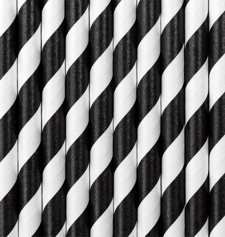 - ● Popieriniai, juodi su baltomis juostelėmis