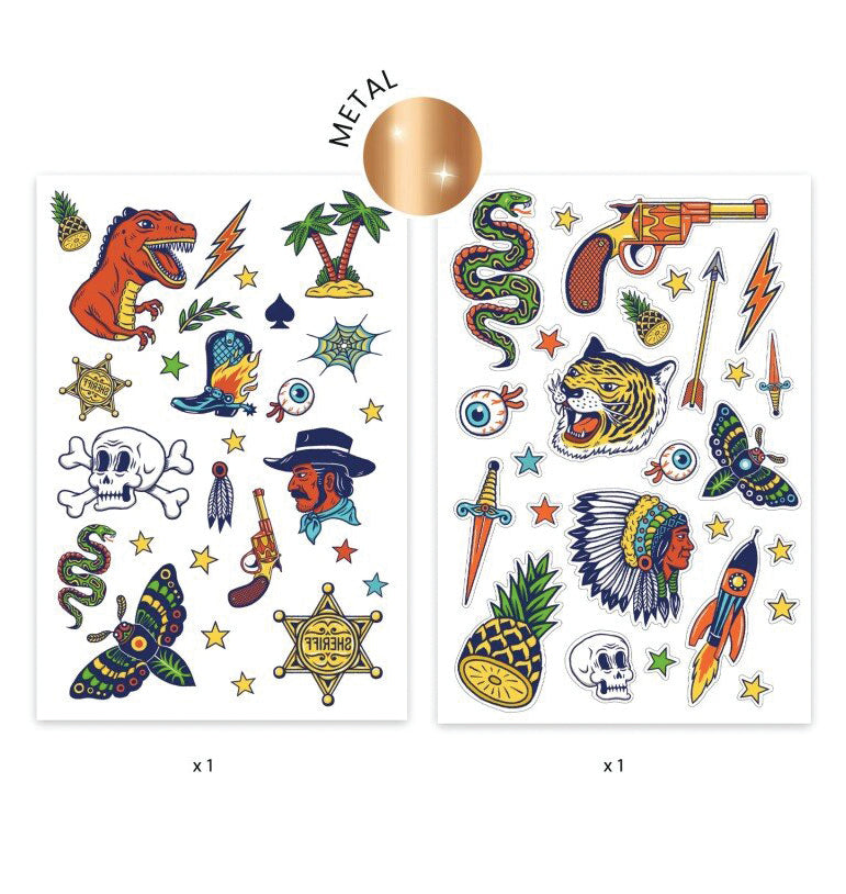 - ● Pakuotėje yra 2 tatuiruočių lapeliai, 50+ tatuiruočių